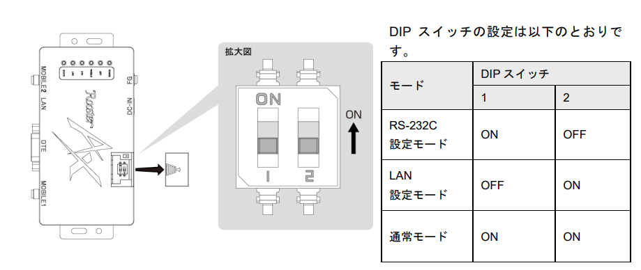 - 接続構成に合わせて、Rooster AX220のDIPスイッチを変更します。